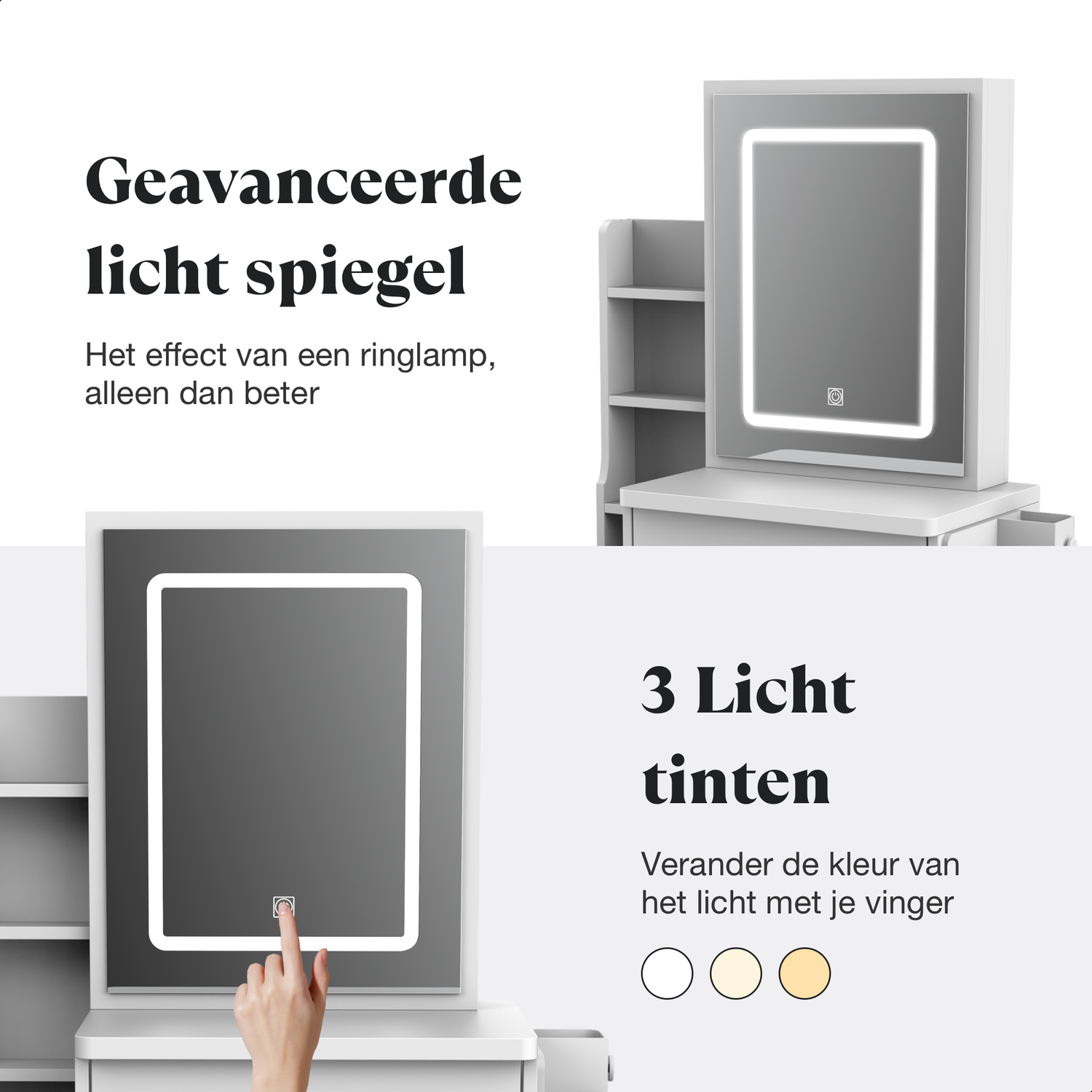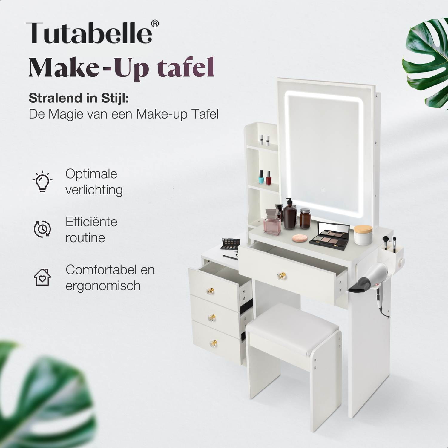 Slimme en ruime lades houden jouw beautycollectie overzichtelijk en chic.